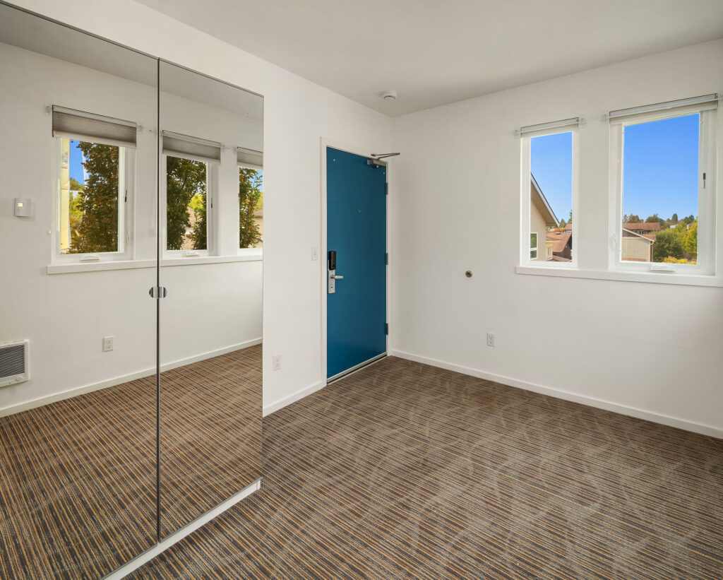 2418 Ballard features 42 thoughtfully designed micro units averaging 196 square feet, maximizing functionality through smart layouts and efficient storage; units feature floor-to-ceiling windows, efficient storage design, LVP flooring, and kitchenettes with a microwave and mini fridge. *Features vary by unit.