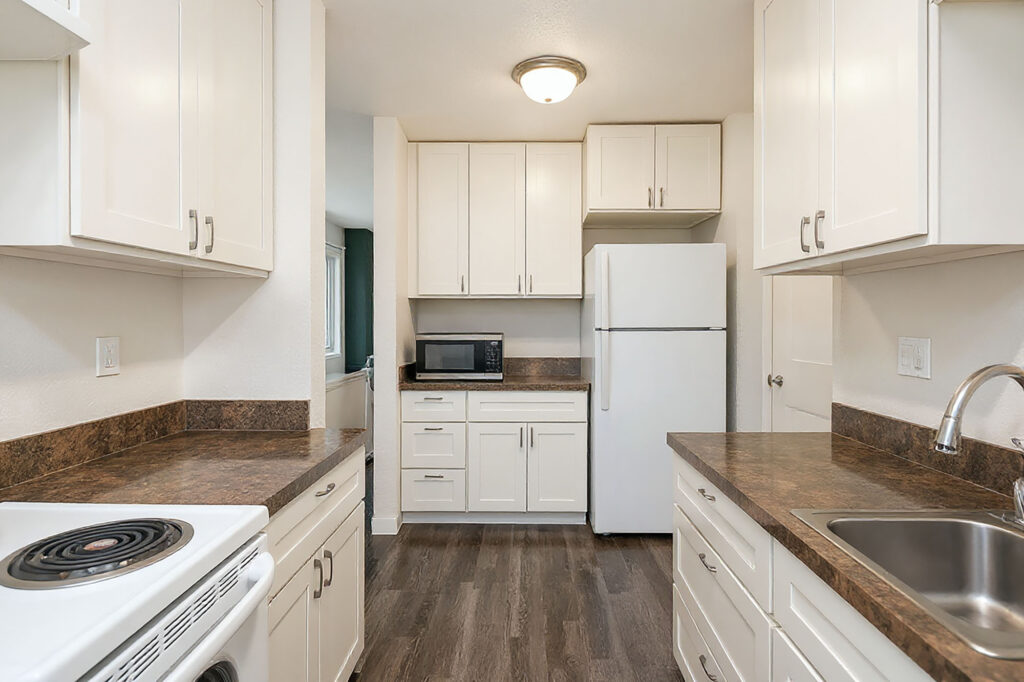 Thoughtful Design: Well-designed two-bedroom, one-and-a-half bathroom units featuring modern finishes, new hard surface flooring, and in-unit washers and dryers.