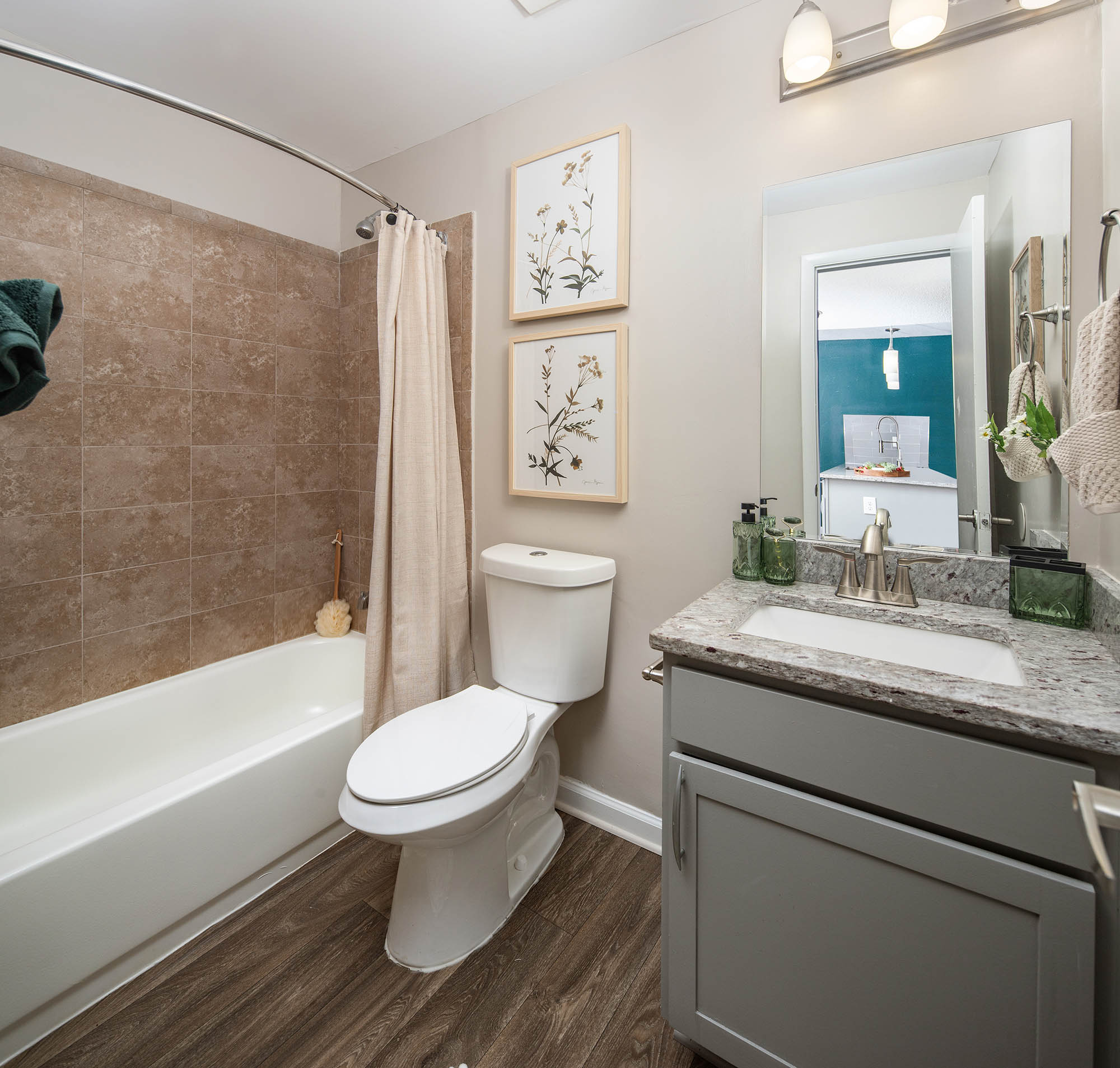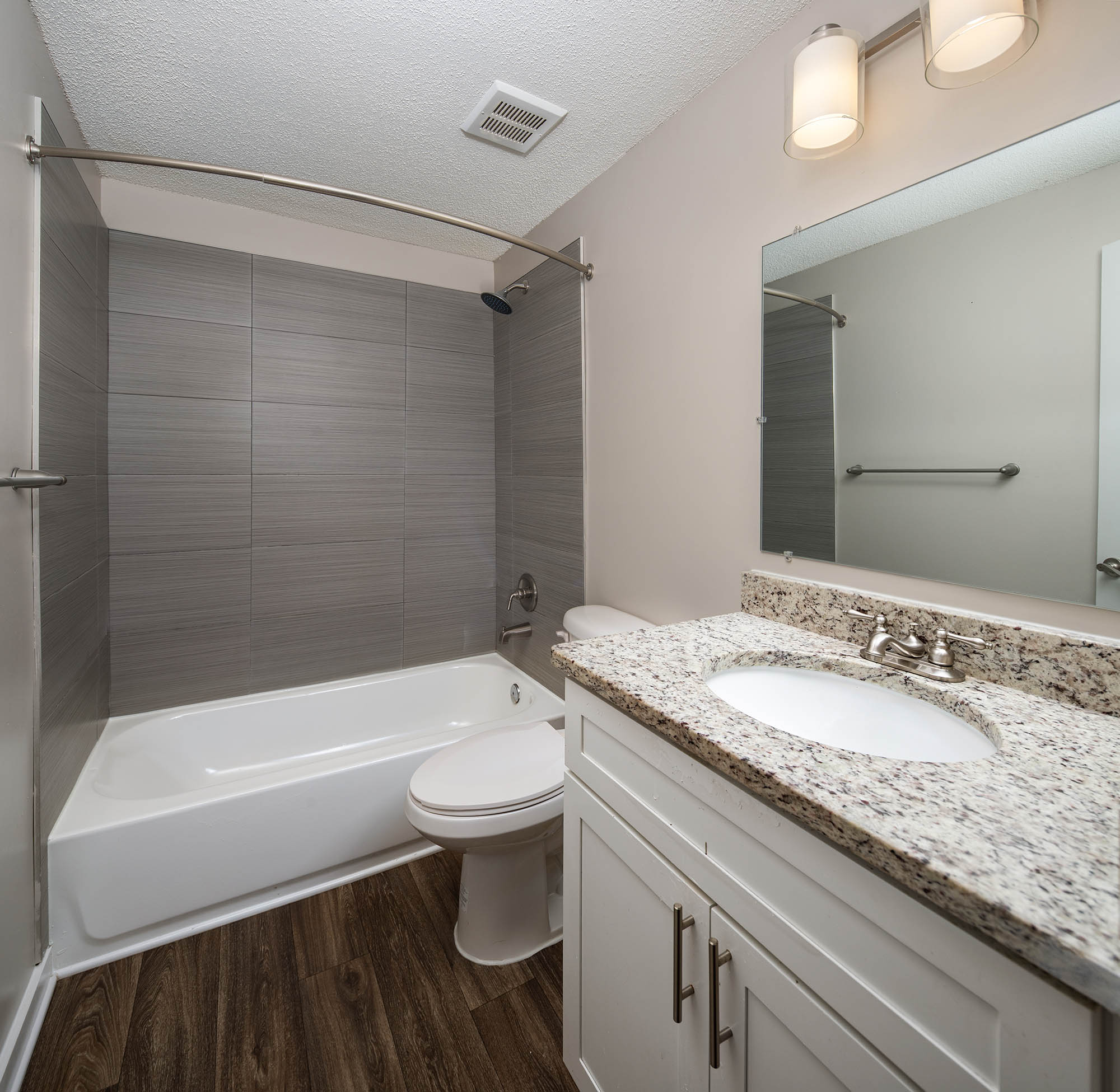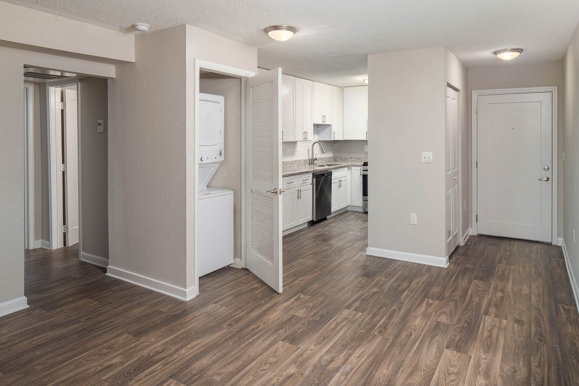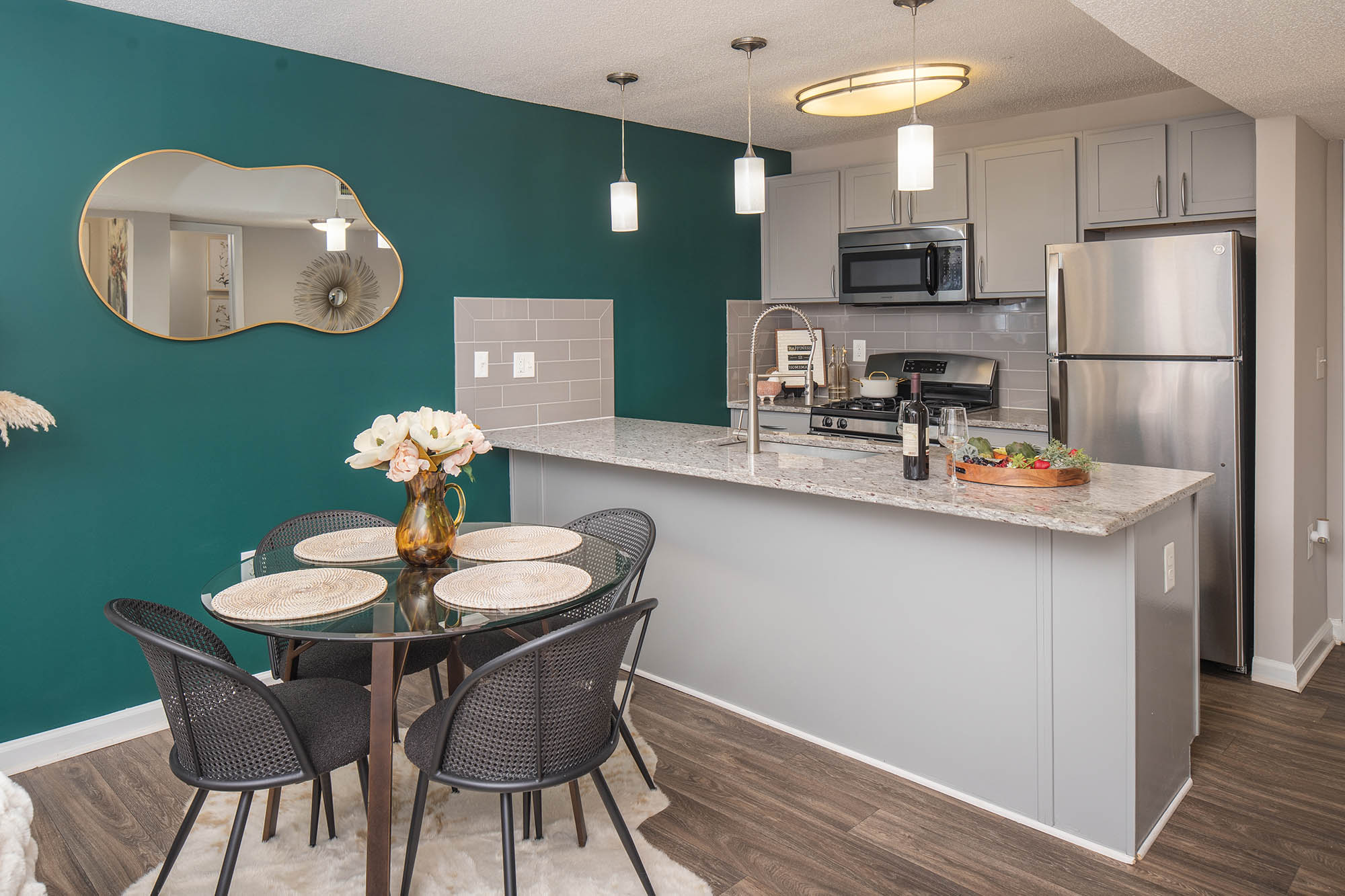 - Spacious and beautifully appointed apartment interiors with stainless steel appliances, granite countertops, subway tile backsplash, etc…