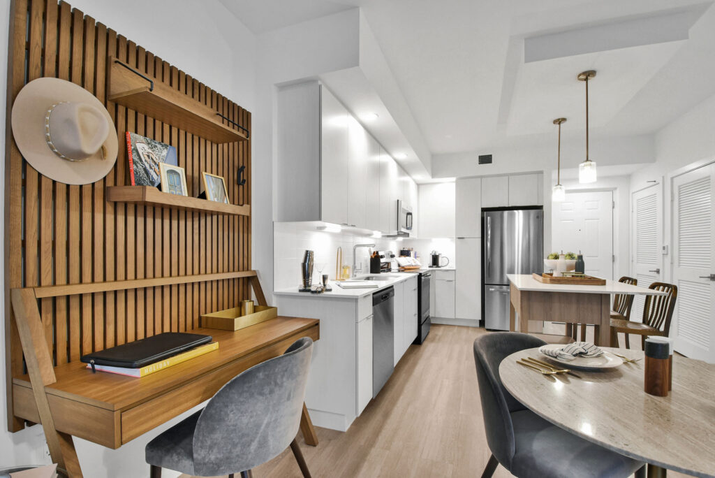 The Property consists of six 4-story residential buildings featuring spacious studio to three-bedroom apartment homes thoughtfully crafted with a contemporary aesthetic and designed to meet the long-term needs of both tenants and ownership.