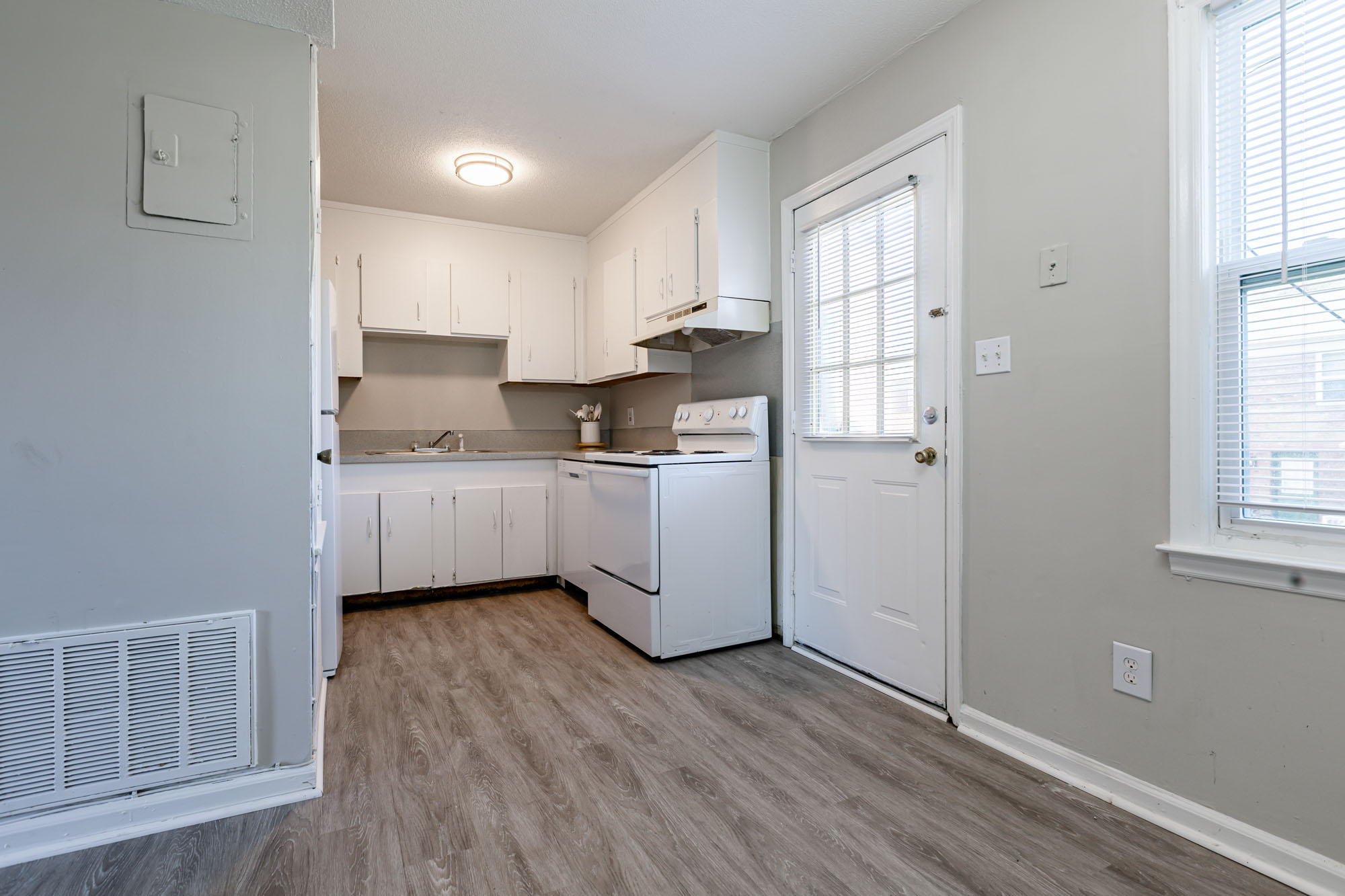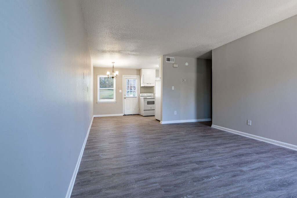 • Faux hardwood vinyl in kitchen, living room, and bathrooms*