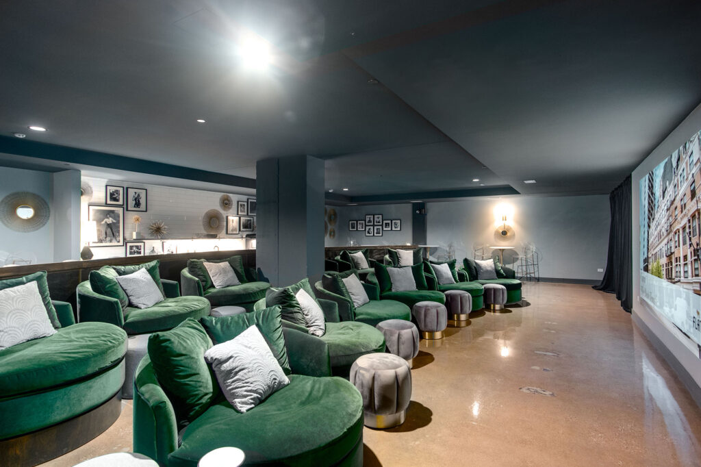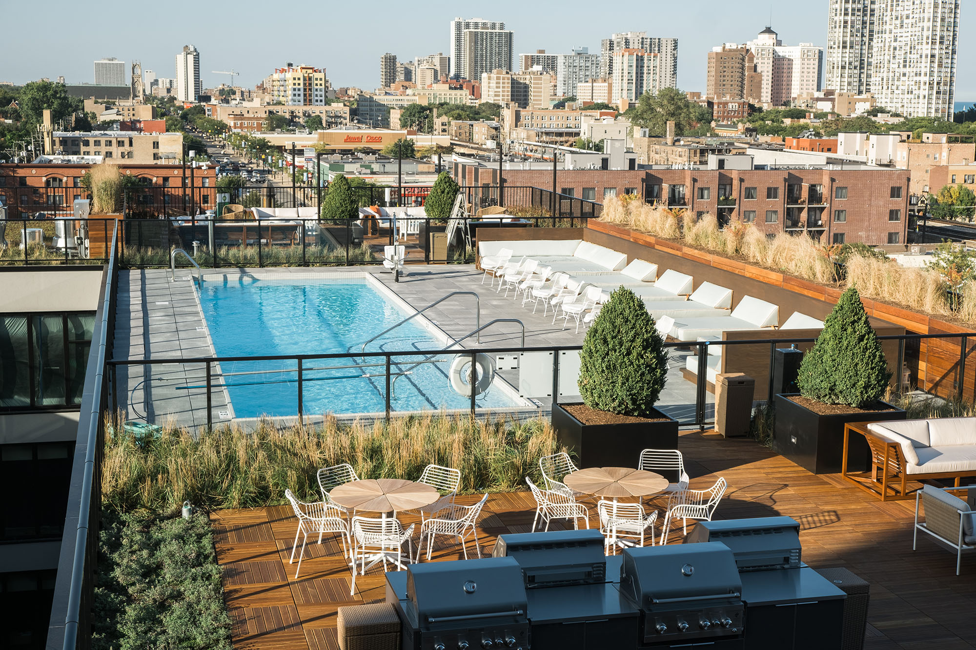 Lobby Lounge, Multi-Level Fitness Center, All-Season Rooftop Lounge with Kitchenette, Rooftop Swimming Pool & Terrace with Grills and Fire Pits, Media Room, Bike Storage, and Garage Parking