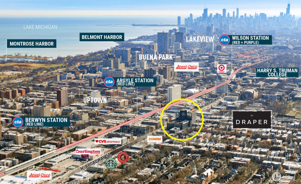 THE DRAPER IS A 342-UNIT LUXURY APARTMENT COMMUNITY LOCATED IN THE HISTORIC UPTOWN NEIGHBORHOOD ON THE NORTH SIDE OF CHICAGO.